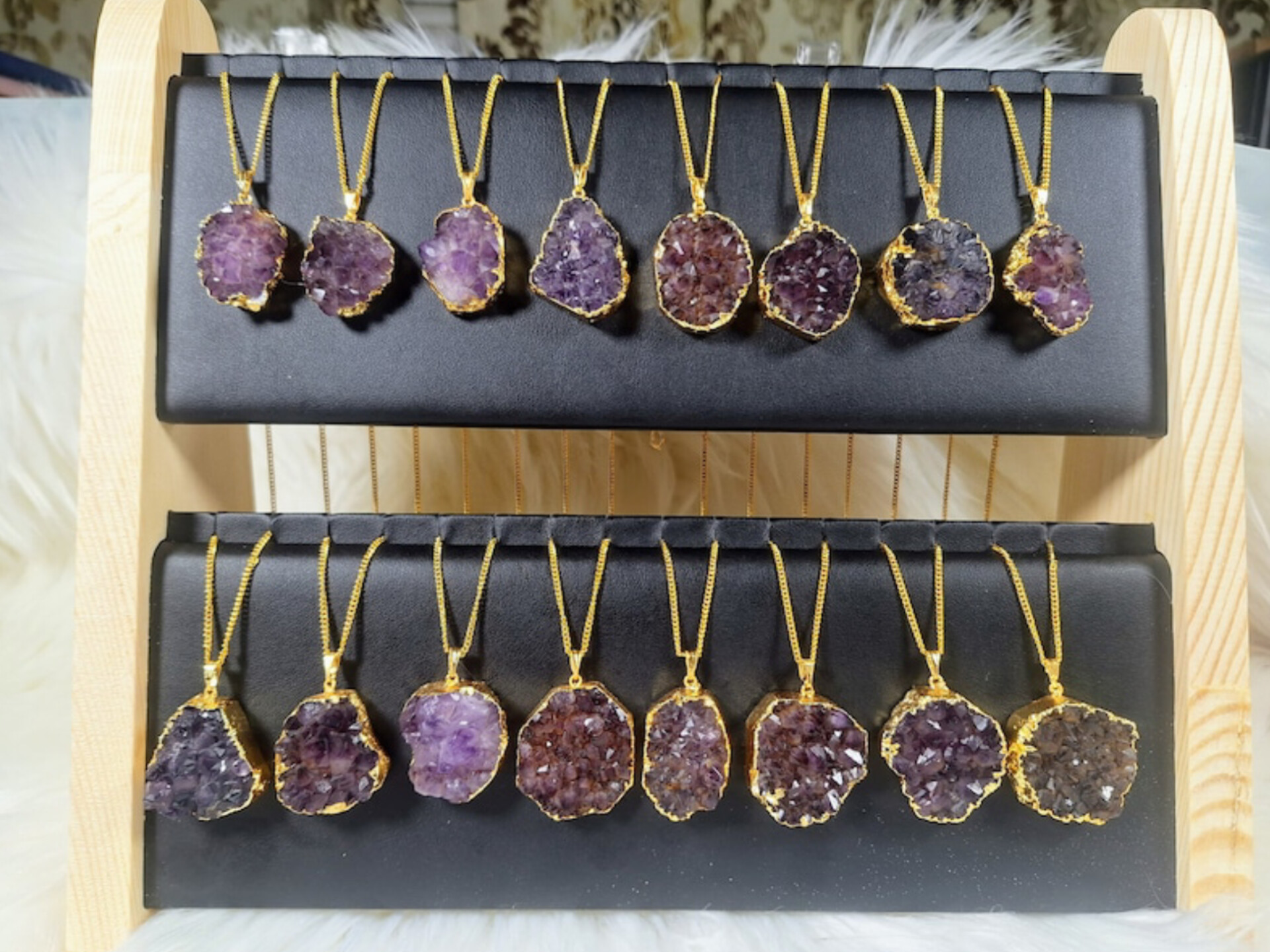 گردنبندسه لاین لوکس وفاخرسنگ آمیتیست کوارتزوسیترین