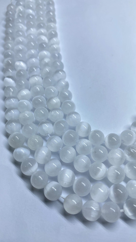 ریسه سلنایت مراکشی کیفیت و تلالوی نور عالی سایز ، ۴۷ مهره در ریسه مناسب برای ساخت دستبند، گردنبند مدیتیشن،درمانی ارسال با همه نقاط با پست پیشتاز یا تیپاکس نحوه پرداخت: هزینه را طبق فاکتور واریز کرده و عکس فیش واریزی و به همراه کد پستی و شماره همراه را از طریق ارسال میکنید ، هزینه ارسال بر عهده ی مشتری عزیز می باشد. سلنایت با چاکرای ششم (چشم سوم) و هفتم بدن (تاجی) در ارتباط است. سنگ مناسبی برای مدیتیشن و مراقبه است، این سنگ به بدن کمک میکند تا کلسیم، ویتامین ها و سایر املاح معدنی را جذب کند. باعث خوابی راحت و آرامش بخش شده و شما را از کابوس های شبانه حفظ می کند. استفاده از این سنگ باعث جوانی و شادابی پوست شده و آکنه و چین و چروک، جای نیش حشرات، خشکی پوست، اگزما و زونا را درمان می کند.