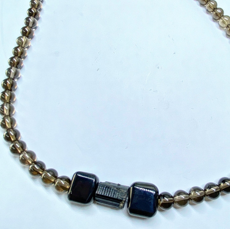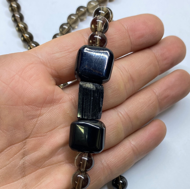 گردنبند سفارشی کوارتز دودی، شبق ، تورمالین سنگدرمانی، چاکرادرمانی، مدیتیشن