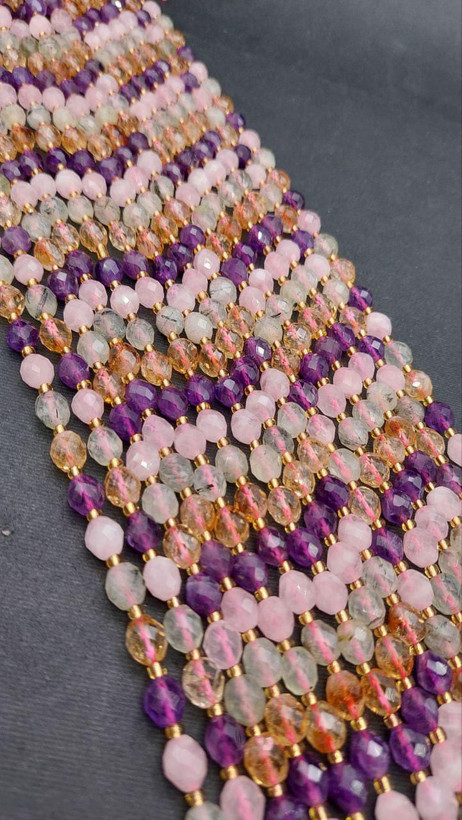 ریسه سنگهای ترکیبی اماتیست،کوارتز،سیترین،اونتورین و...بسیارباکیفیت وانرژی مناسب استفاده تکی ویاساخت اکسسوری