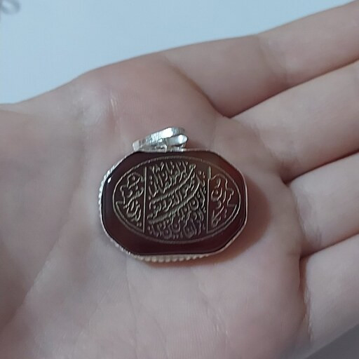 آویز وان یکاد با حکاکی آیات بر روی عقیق اصل و قاب برنجی آبکاری