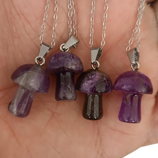 آویزگردنی سنگ آمیتیست اصل ومعدنی طرح قارچ ظریف وزیبا