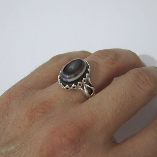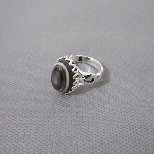 حراج انگشتر عقیق اصل و معدنی سه پوست با رکاب برنجی سایز 64