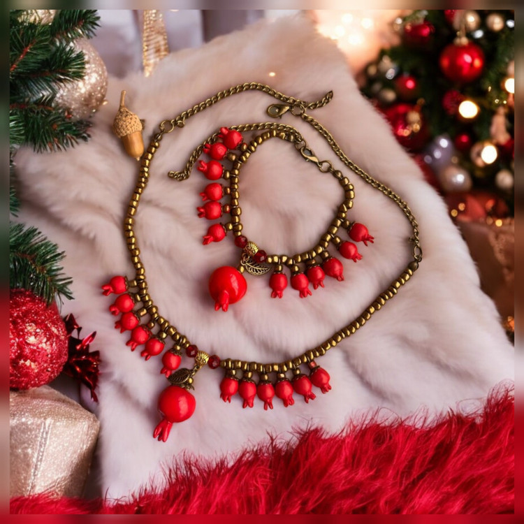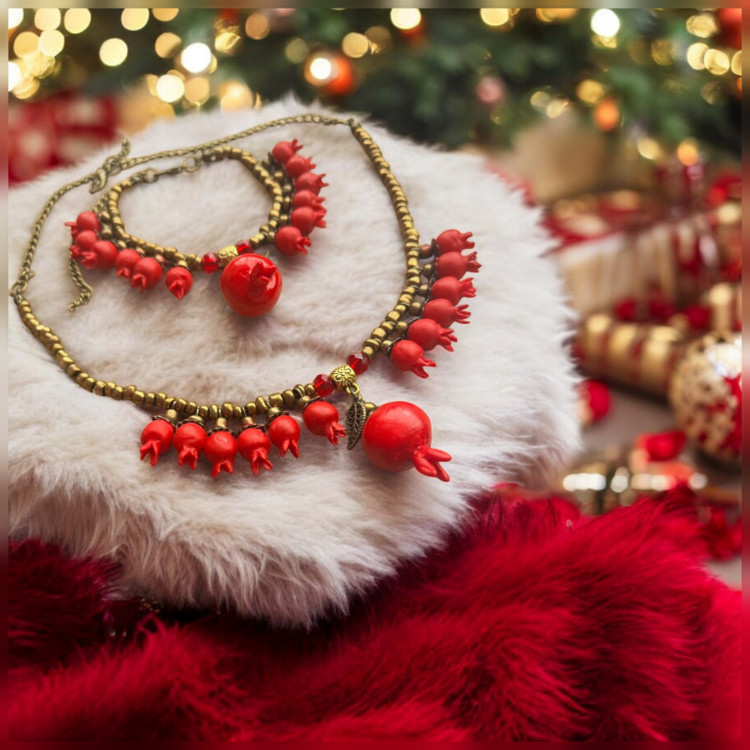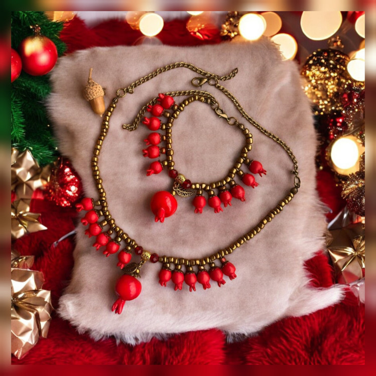 ست گردنبند ودستبند زنانه یلدایی طرح انار دونه