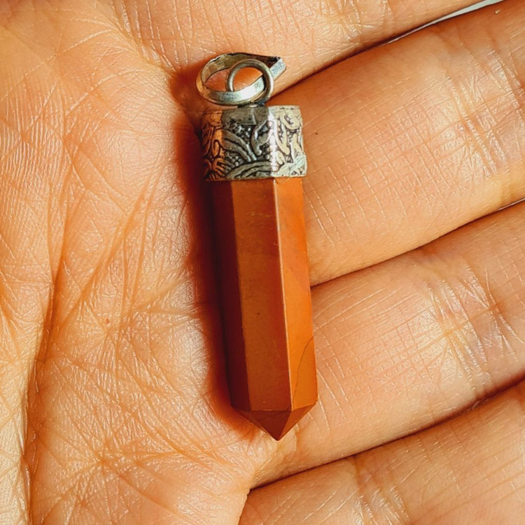 اویزگردنی سنگ جاسپرسرخ اصل ومعدنی تراش منشور
