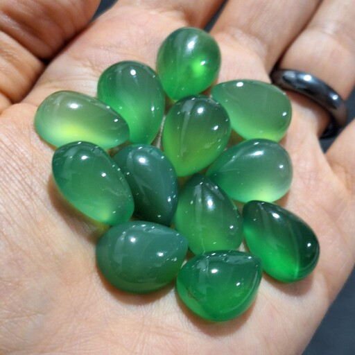 نگین عقیق سبز معدنی کیفیت عالی تراش اشک دامله سرشار از انرژی و خاصیت وزن حدودا: 2 تا 3 گرم ابعاد حدودا: 1.8cm×1.3cm