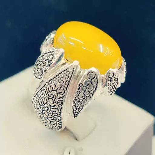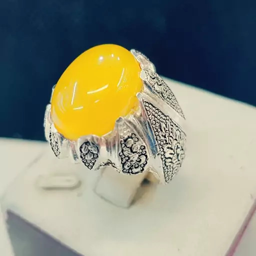 انگشترنقره ۹۲۵مردانه سنگ عقیق زردشرف الشمس