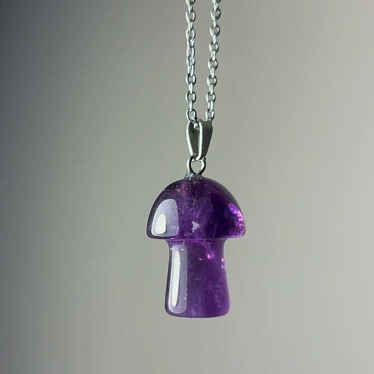 پلاک گردنی سنگ آمتیست اصل ومعدنی تراش کیوت قارچی