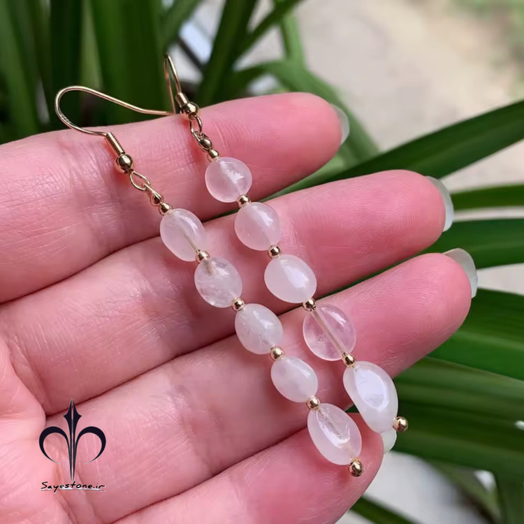 گوشواره اویززنانه باسنگهای اصل ومعدنی رزکوارتز