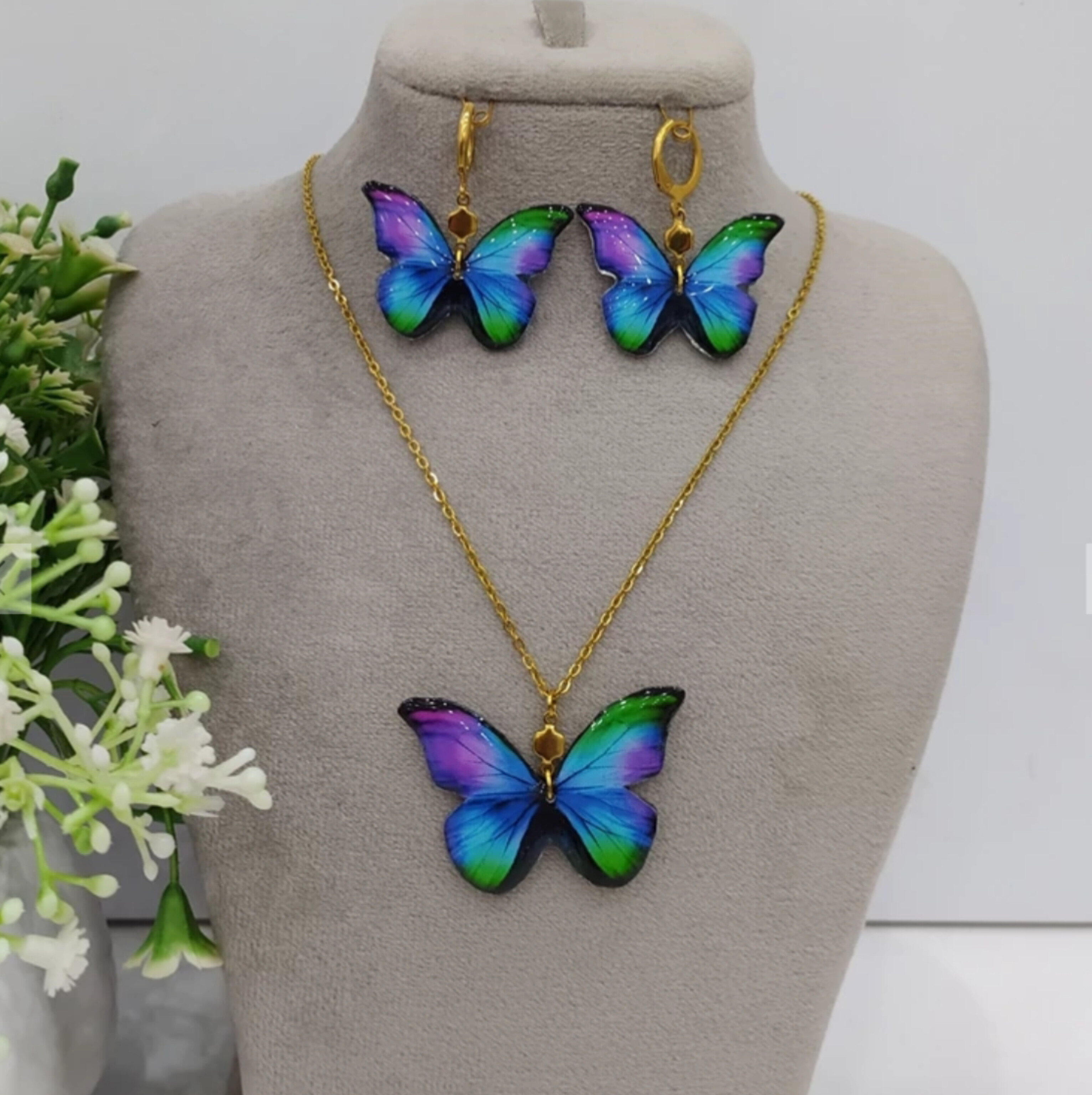 نیم ست لوکس زنانه پروانه رنگین کمانی آبی