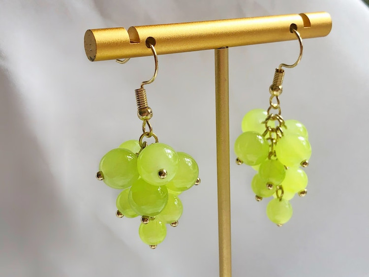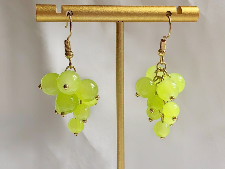 گوشواره زنانه آویزسنگ جیدسبزمدل خوشه انگور استیل ضدحساسیت