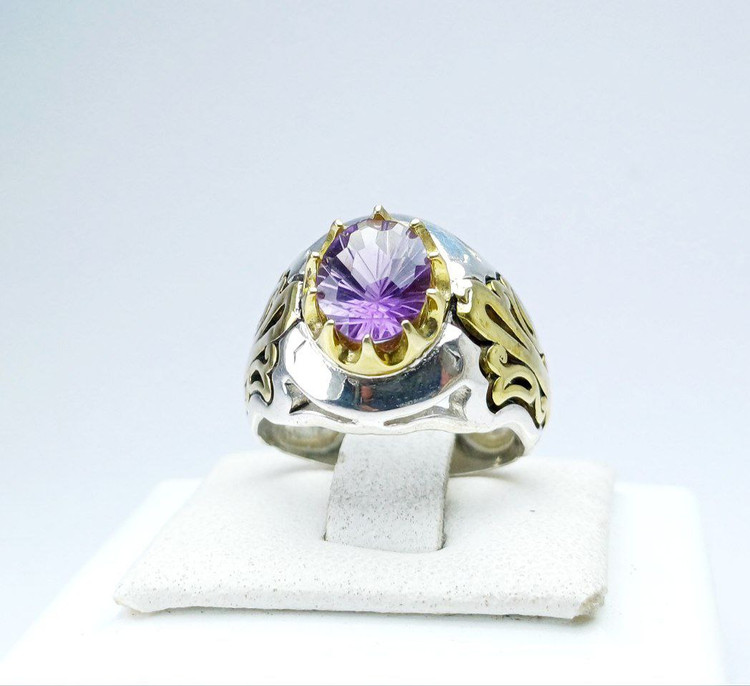 انگشترمردانه نقره ۹۲۵ باسنگ اصل ومعدنی آمیتیست