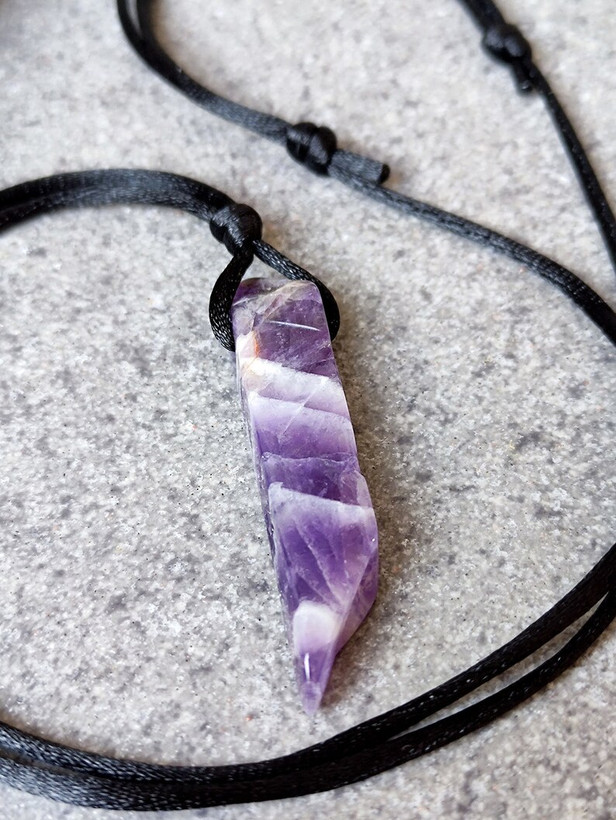 پلاک گردنی سنگ آمتیست اصل ومعدنی مردانه طرح سرخپوستی