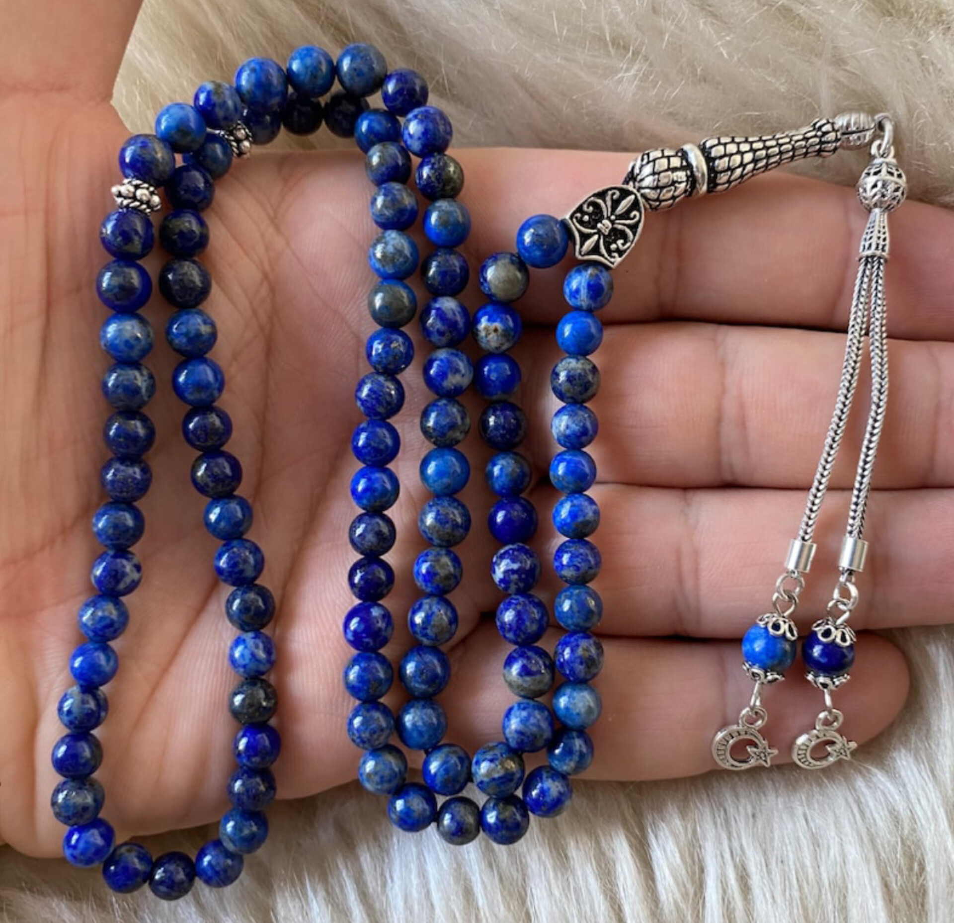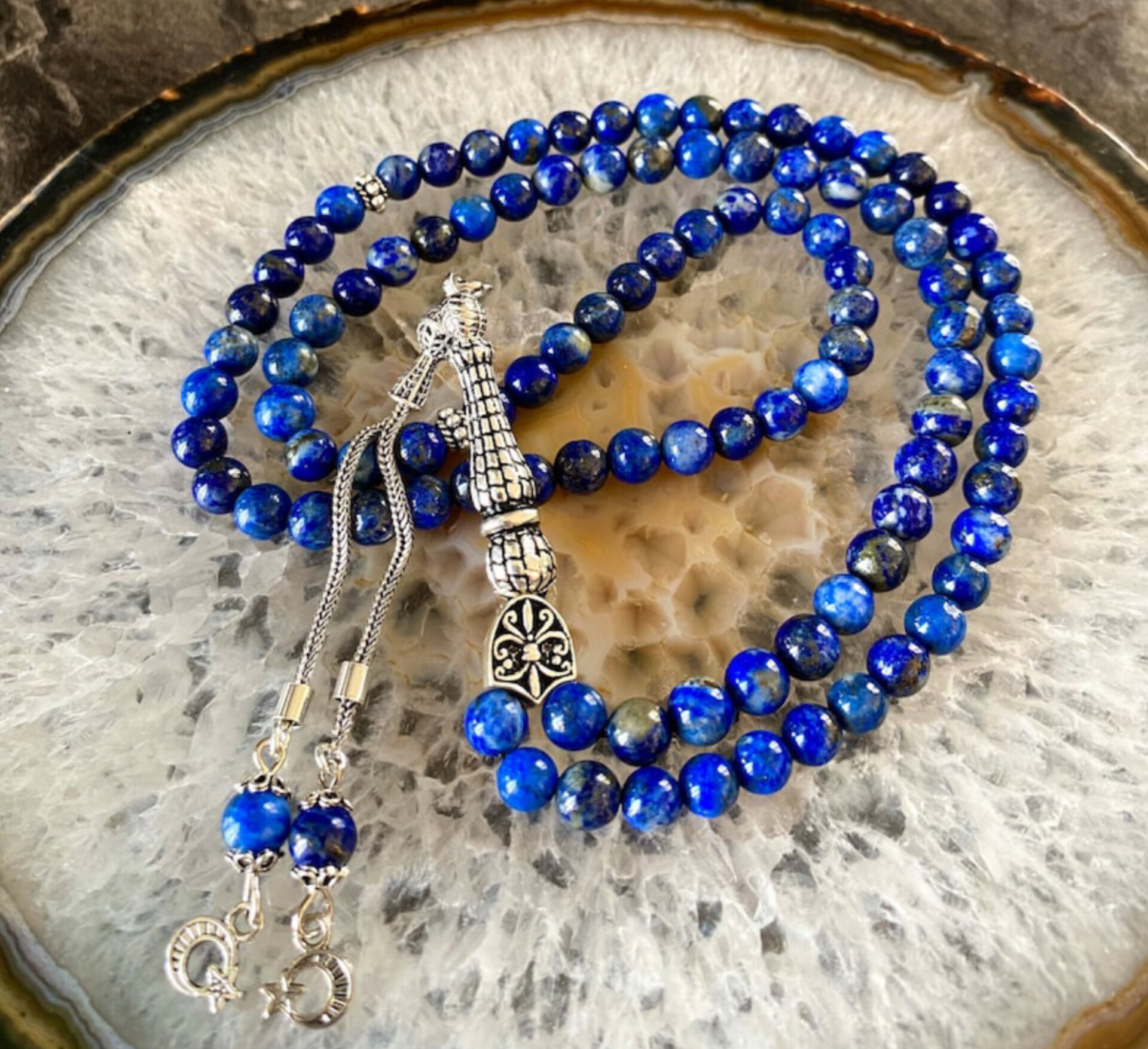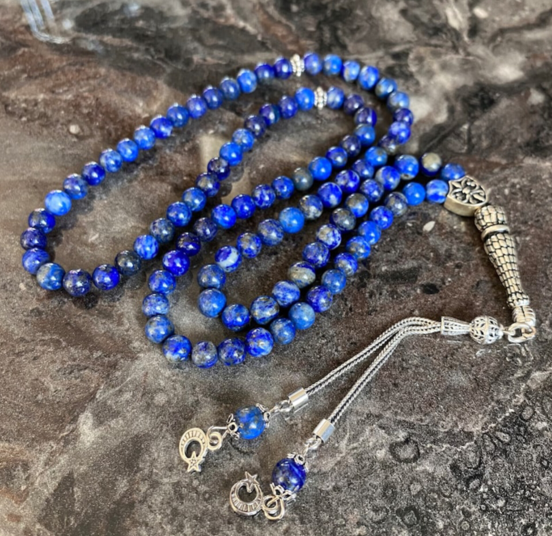 تسبیح سنگ لاجوردافغان اصل ومعدنی سایز۶ تعدادمهره۱۰۱