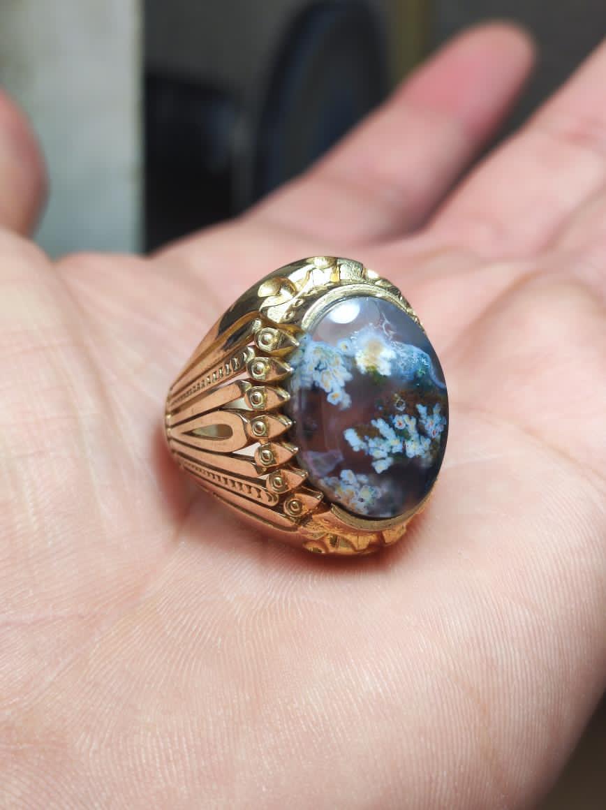 انگشتر درشت مردانه نقره اب طلا باشجراصل ومعدنی پاییزی سایز۶۱