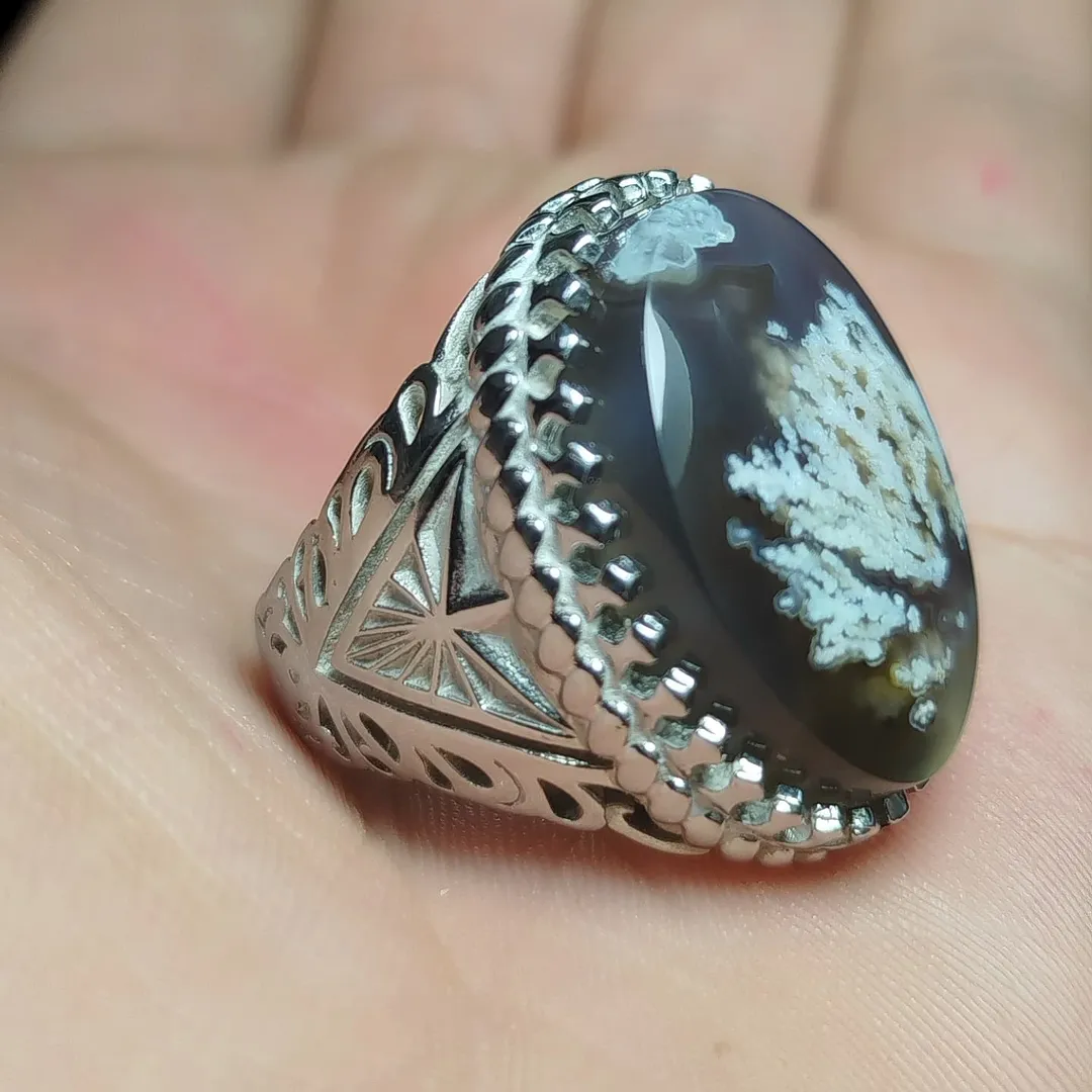 انگشتردرشت مردانه نقره باسنگ شجراصل ومعدنی قائن سایز۶۰